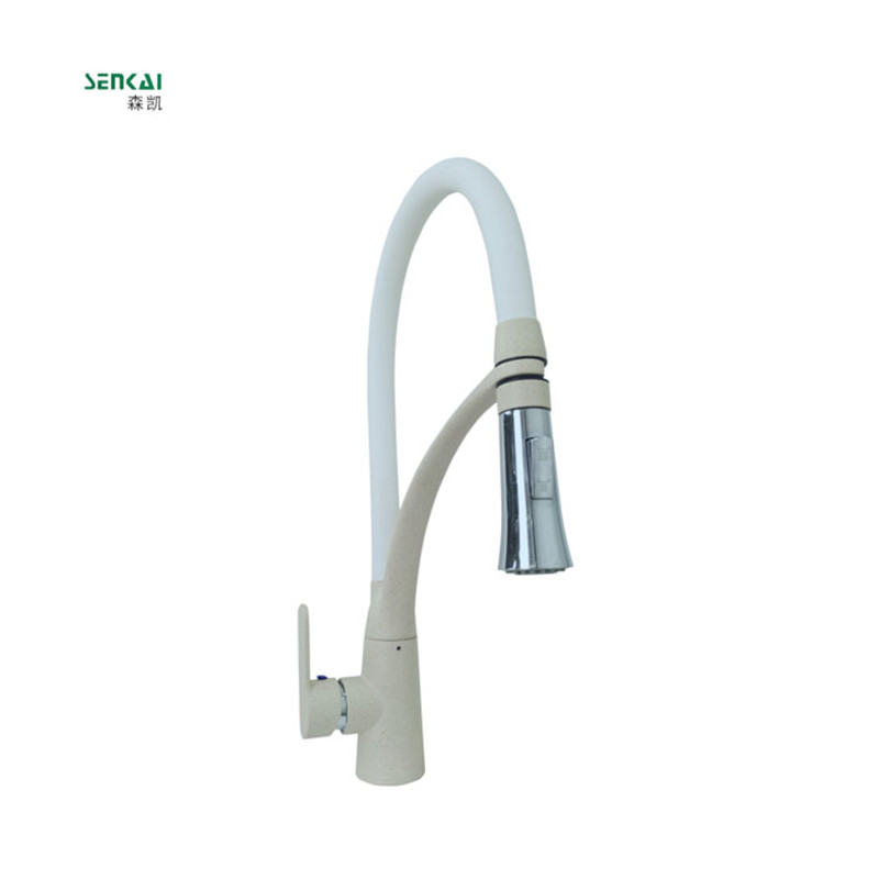 SK-FZ49白色軟管主體米色斜杠桿龍頭